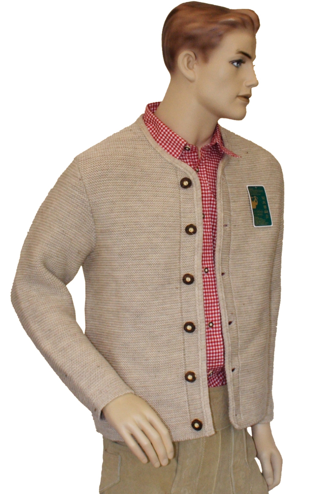 Traditionelle hochrund geschlossene Strickjacke mit Schurwolle